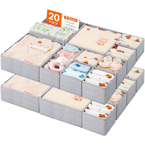 Lifewit 20 Pack Drawer Organiser for Baby Clothes, Collapisble Fabric Chest of Draw Dividers Nursery Closet, Dresser, Bedroom, Foldable Cube Boxes, Pants, Underwear Organization