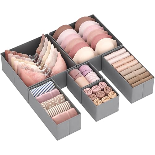Lifewit 6 Pack Drawer Organiser, Collapisble Fabric Chest of Draw Dividers for Closet, Dresser, Nursery, Bedroom, Foldable Cube Boxes for Clothes, Pants, Underwear, Sock, Bras Organization, Light Grey