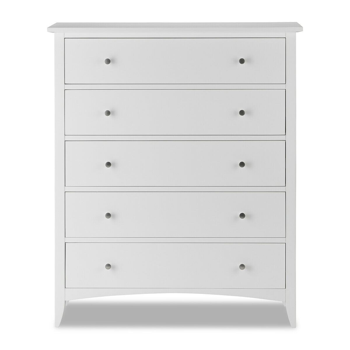 URBNLIVING White Wooden Bedroom Furniture Cabinet Chest of Drawers Dressing Table Wardrobe - 5 Draw Cabinet