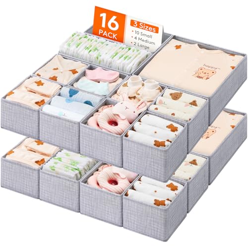 Lifewit 16 Pack Drawer Organiser for Baby Clothes, Collapisble Fabric Chest of Draw Dividers Nursery Closet, Dresser, Bedroom, Foldable Cube Boxes, Pants, Underwear Organization