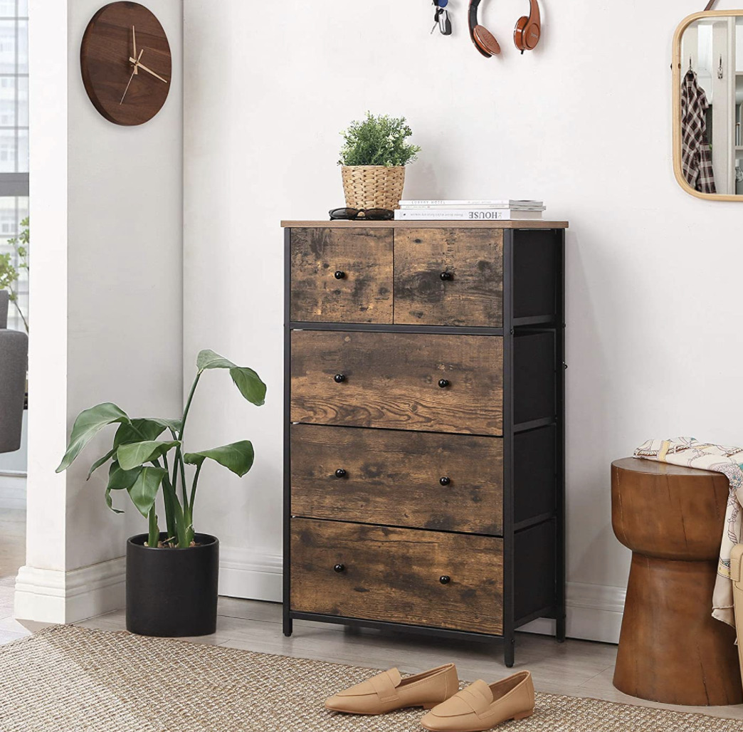 Industrial Chest Drawers Rustic Storage Unit 7 Fabric Drawer Metal Frame Cabinet