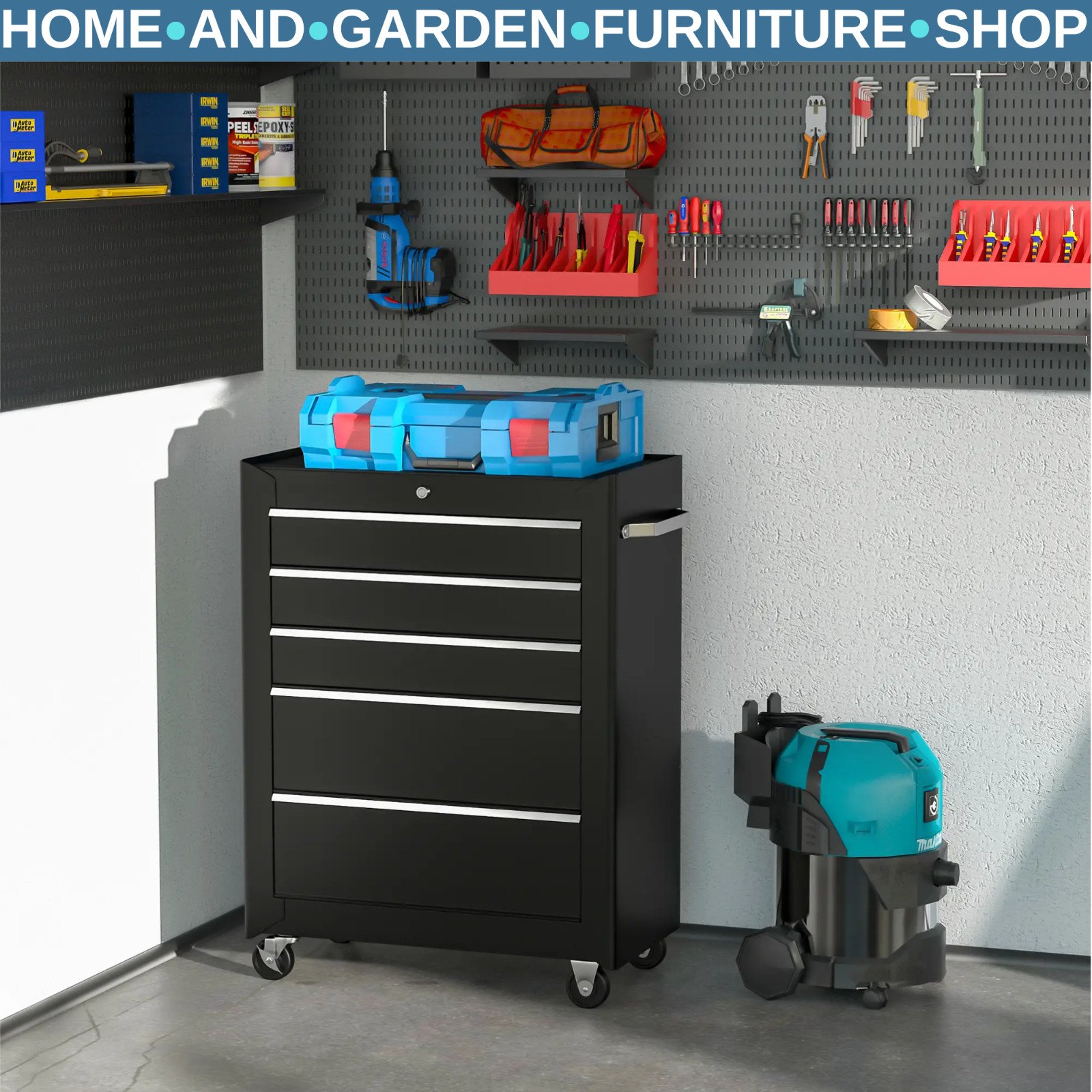 Chest Storage Cabinet 5-Drawer Durable Alloy Steel Frame Garage Organizer Black