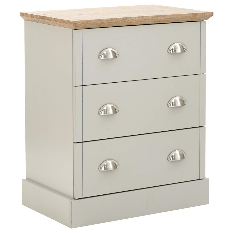GFW Kendal Chester Drawers With Steel Cup Drawer Pulls For Bedroom, Modern Wooden Storage Drawers, Modern Bedroom Furniture Clothes Storage With Contrast Beaufort Oak Top, Grey, 58D x 38.5W x 71.5Hcm