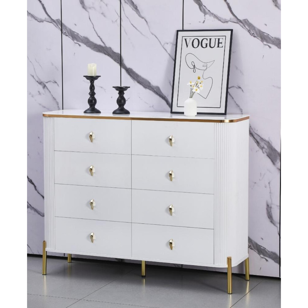 HIGH GLOSS BEDROOM CHESTER DRAWER ELEGANT WHITE WITH GOLD ACCENTS