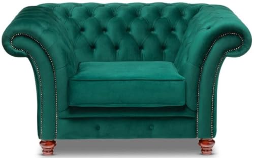 Chesterfield Belmont Chair Plush Green Velvet | Handcrafted In The UK | Deep Button Tufted Design | Rolled Arms | Classic Accent Seating For Living Rooms And Bedrooms