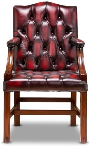 Gainsborough Chesterfield Visitor Desk Chair Antique Red Leather | Classic Button Tufted Office Chair With Wooden Frame | Traditional British Style Seating