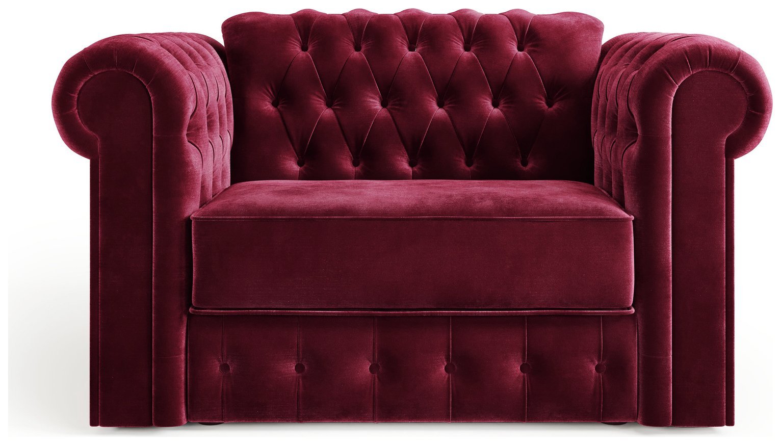 Jay-Be Chesterfield Velvet Cuddle Chair Sofa Bed - Burgundy