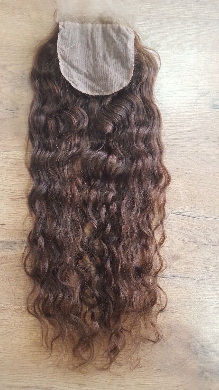 20"Brazilian Virgin Human Hair WATER WAVE Closure CHESTNUT BROWN 4# 150% DENSITY