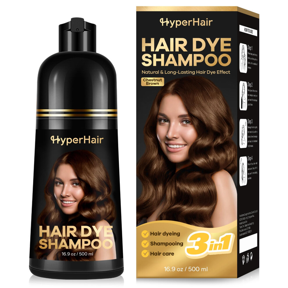 HyperHair Chestnut Brown Hair Dye Shampoo Shampoo for Color Treated Hair Hair Dye for Covering Gray Hair Shampoo for Gray Hair Suitable for Women