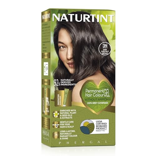 Naturtint Permanent Hair Colour Gel 3N Dark Chestnut Brown, Plant Enriched, Biobased, Ammonia Free, Long Lasting Grey Coverage and Radiant Colour, Nourishment and Protection