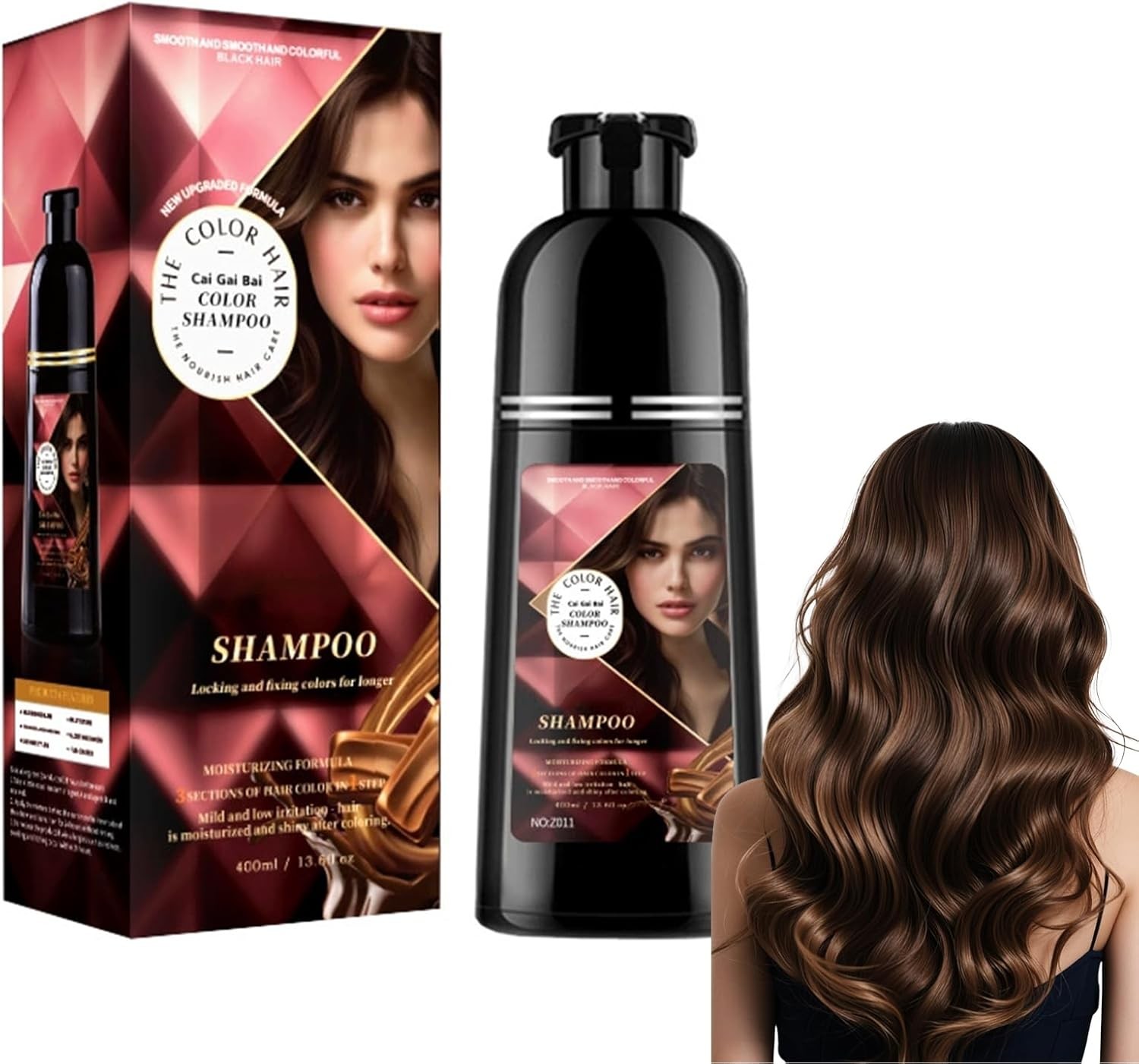 400ml Brown Hair Dye Shampoo, Natural Ingredients, Deep Conditioning, Long Lasting Fast Coloring, Full Coverage for Men and Women