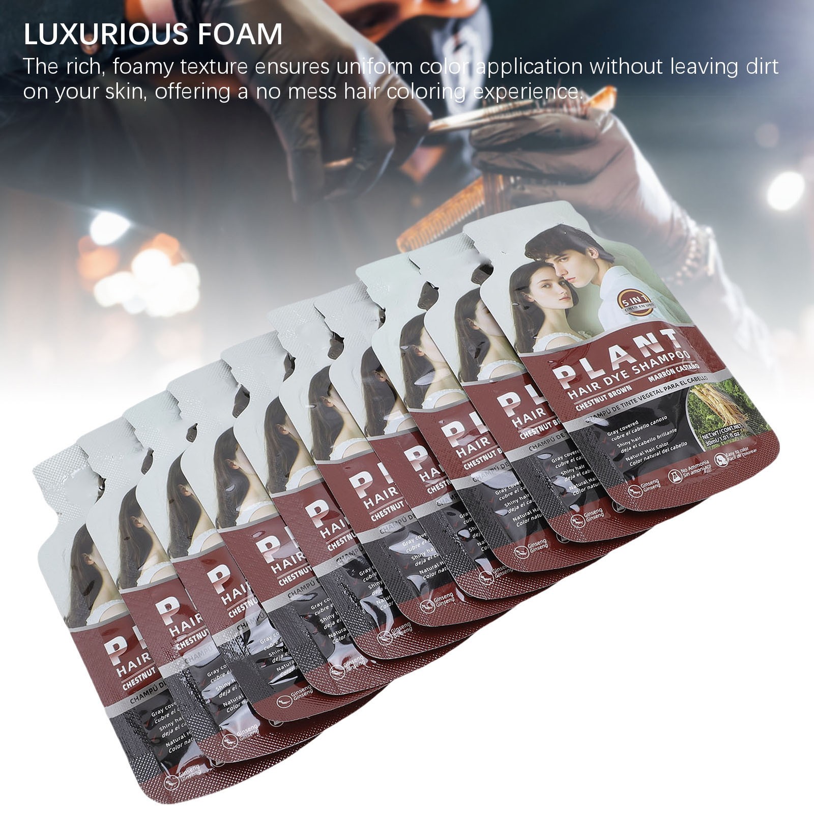 10 PCS Bubble Hair Dye Non Damage Chestnut Brown Hair Dye Shampoo For Grey Hair