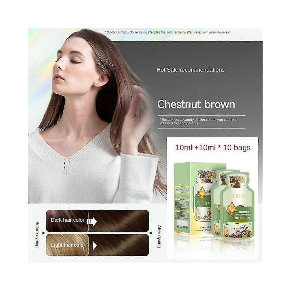 (Chestnut Brown) Natural Plant Hair Color Changea Box Of 10 Bags Of Bubble Hair Dye, Each Containing 20ml