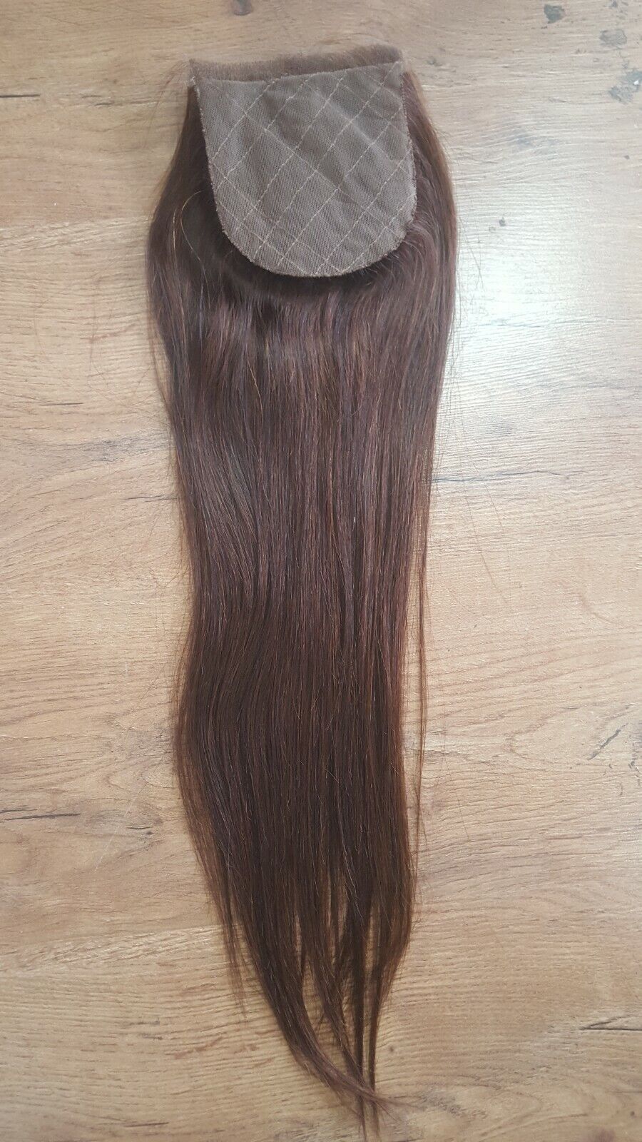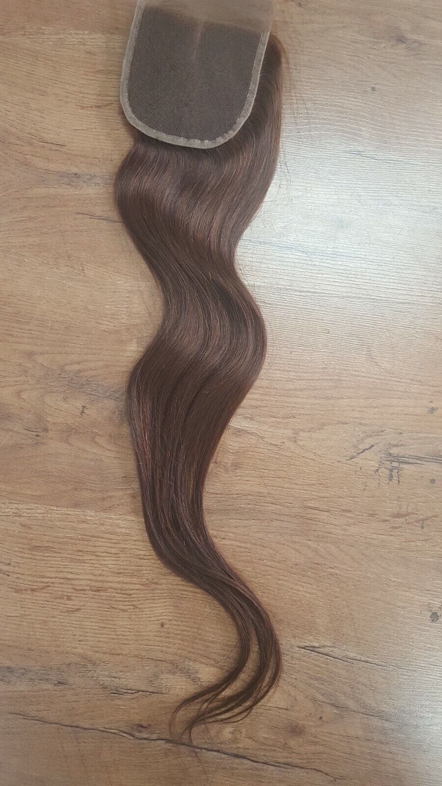 20" SILK BASE CLOSURE 4X4 BRAZILIAN VIRGIN HUMAN HAIR Straight CHESTNUT BROWN 4#