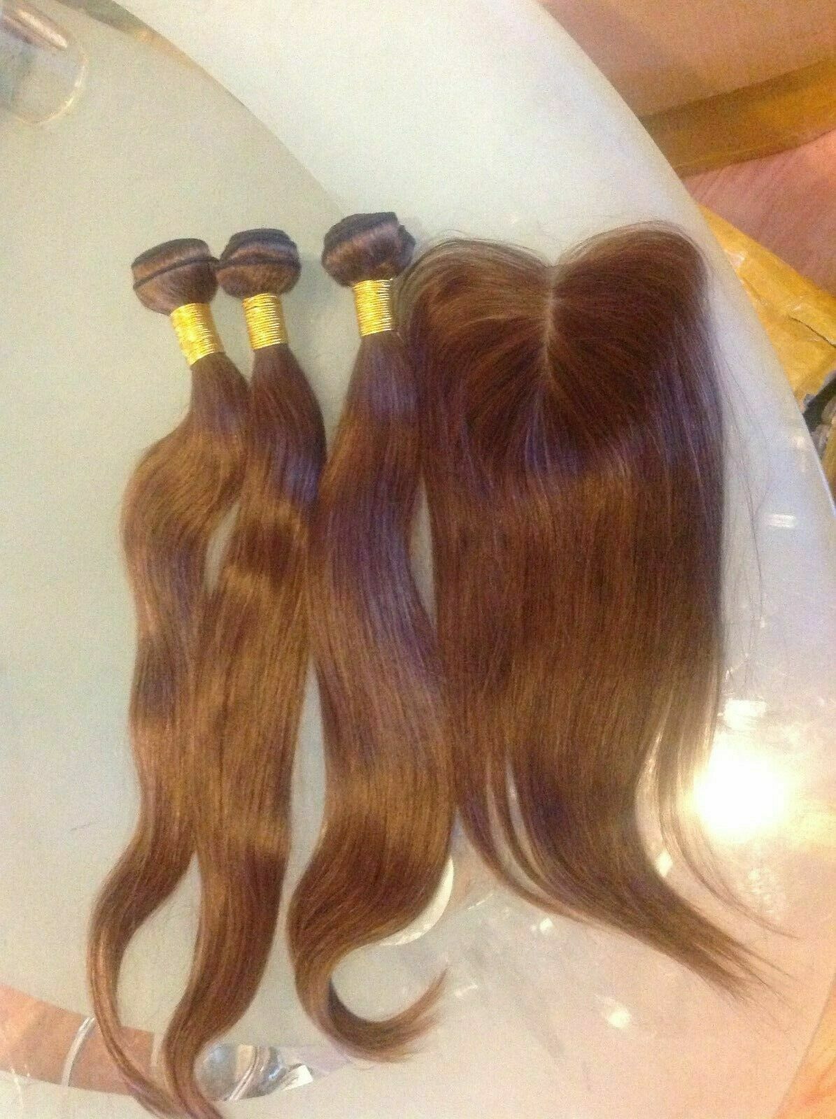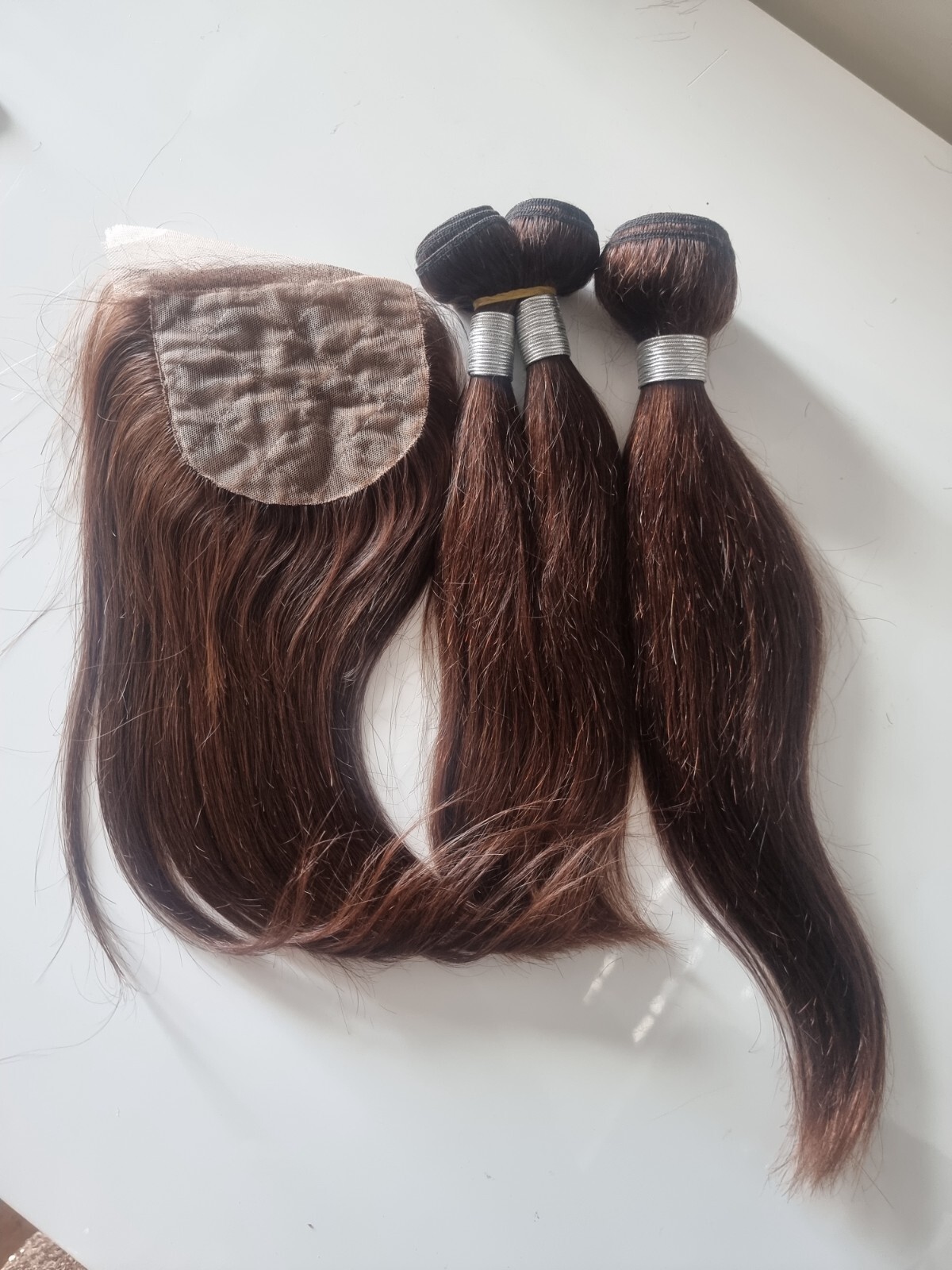 12A PERUVIAN VIRGIN HAIR STRAIGHT 12+14&12 SILK BASE CLOSURE CHESTNUT BROWN 4#