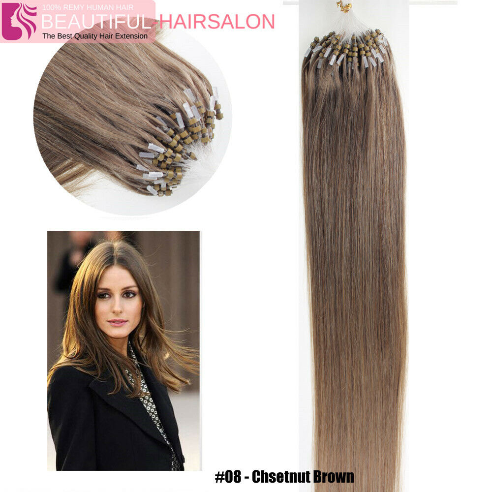 8A 14" Chestnut Brown 0.8g Micro Loop Ring Link Bead Human Hair Extension #08 UK