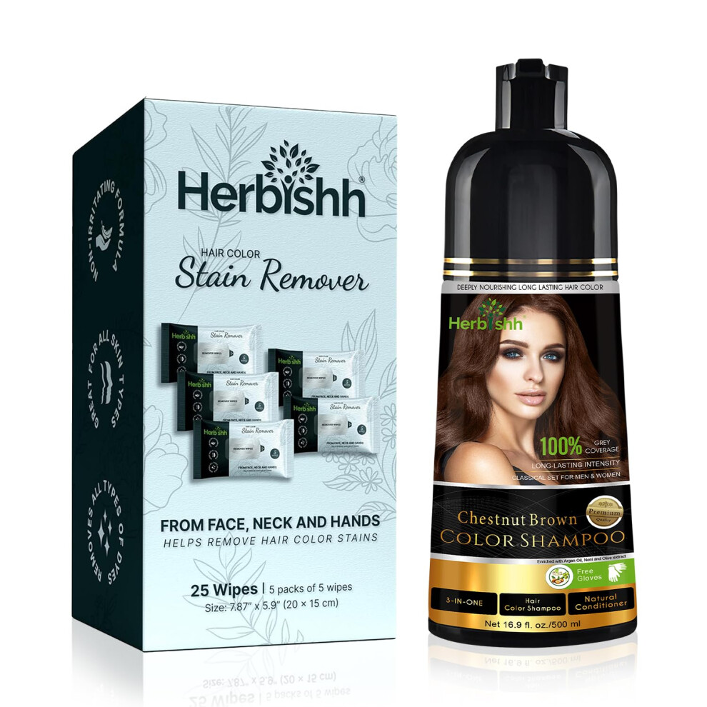 Herbishh Hair Color Shampoo For Gray Hair - Chestnut Brown Hair Dye Shampoo 3 In 1 - Tinte Champu Para Canas Mujer - Hair Color Shampoo For Men &