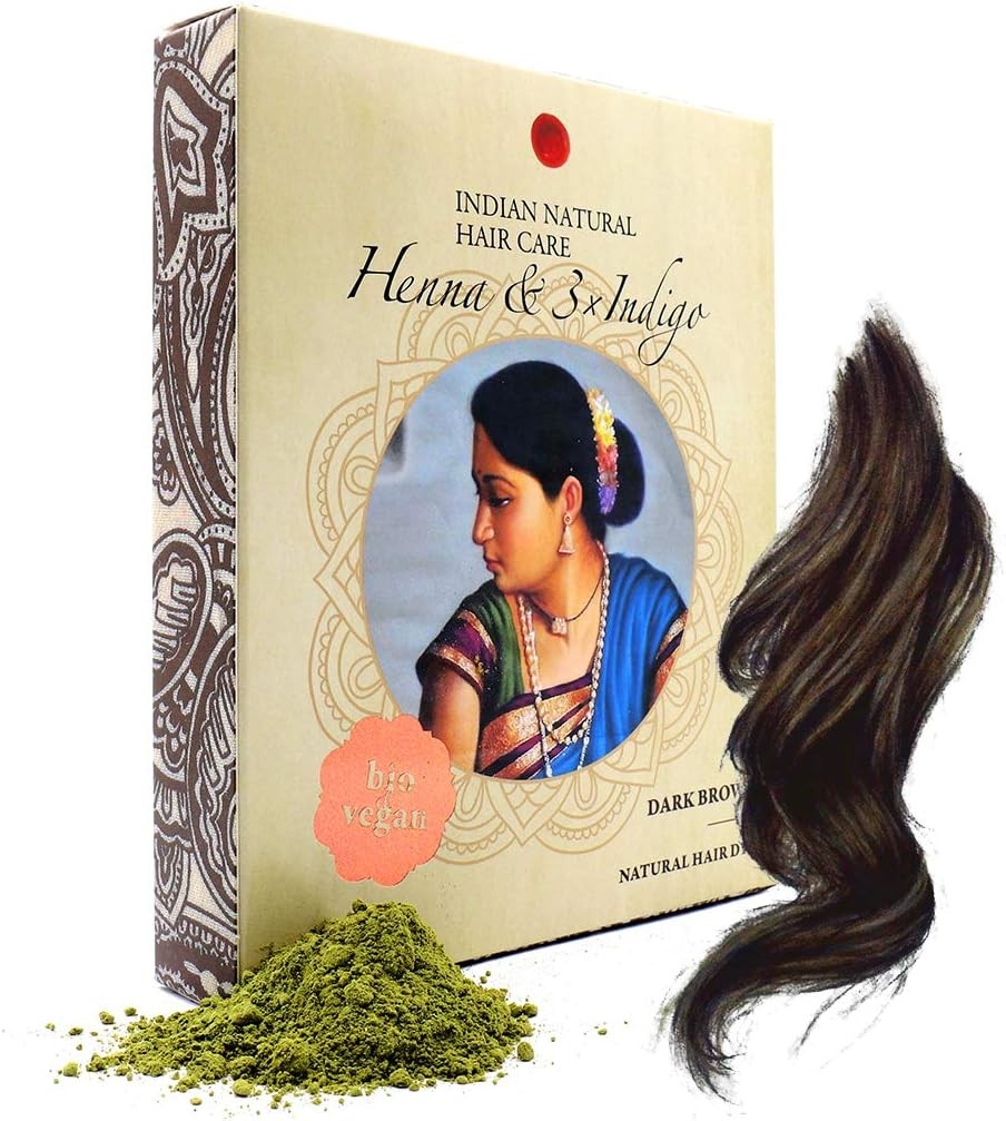 Henna & Indigo Powder - Brown Hair Dye - Fresh & Pure Organic - 7oz - Indian Natural Hair Care
