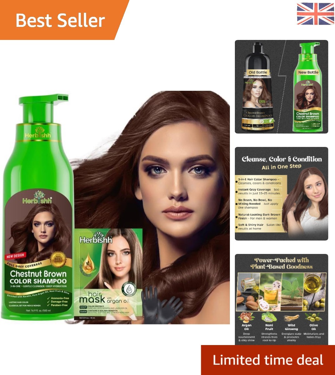 Unscented Hair Colour Shampoo for Grey Hair - Chestnut Brown, 500 ml
