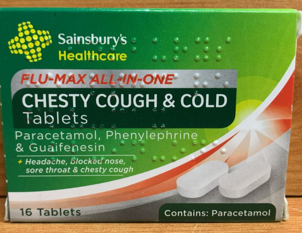 Sainsbury's Healthcare Flu-Max All-in-One Chesty Cough & Cold 16Tablets.
