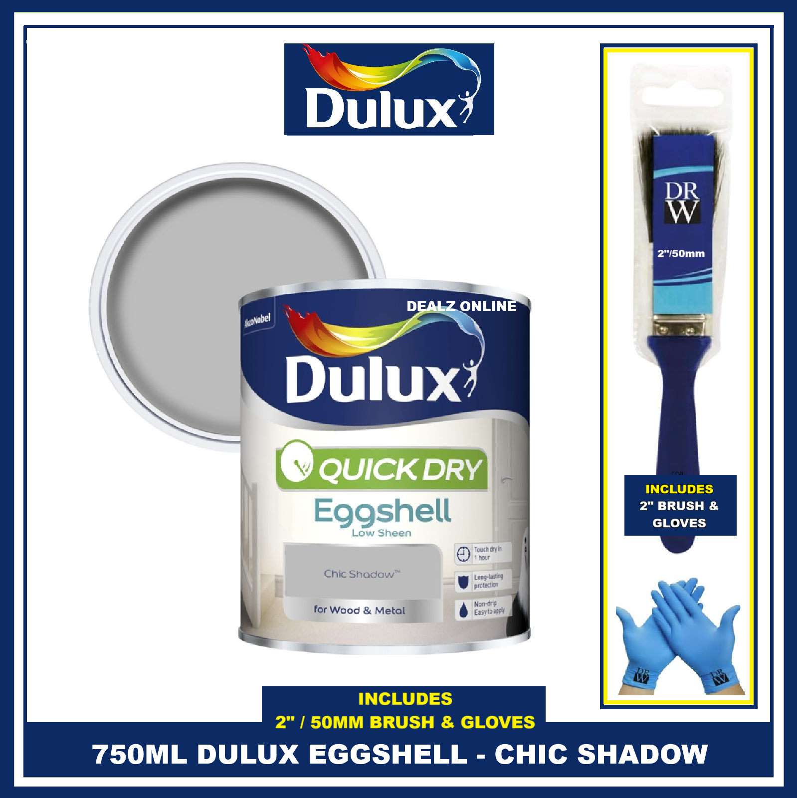 Dulux Quick Dry Chic Shadow 750ML Gloss Paint Int Wood Metal FREE BRUSH & GLOVES