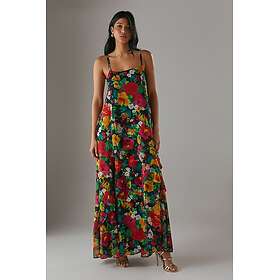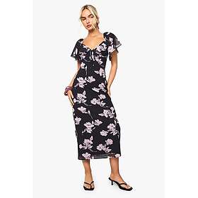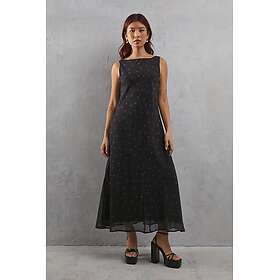 Warehouse Heart Print Chiffon Slash Neck Bias Sleeveless Midi Dress