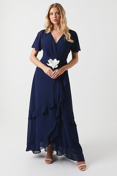 Oasis Womens Kimono Sleeve Ruffle Chiffon Maxi Bridesmaids Dress