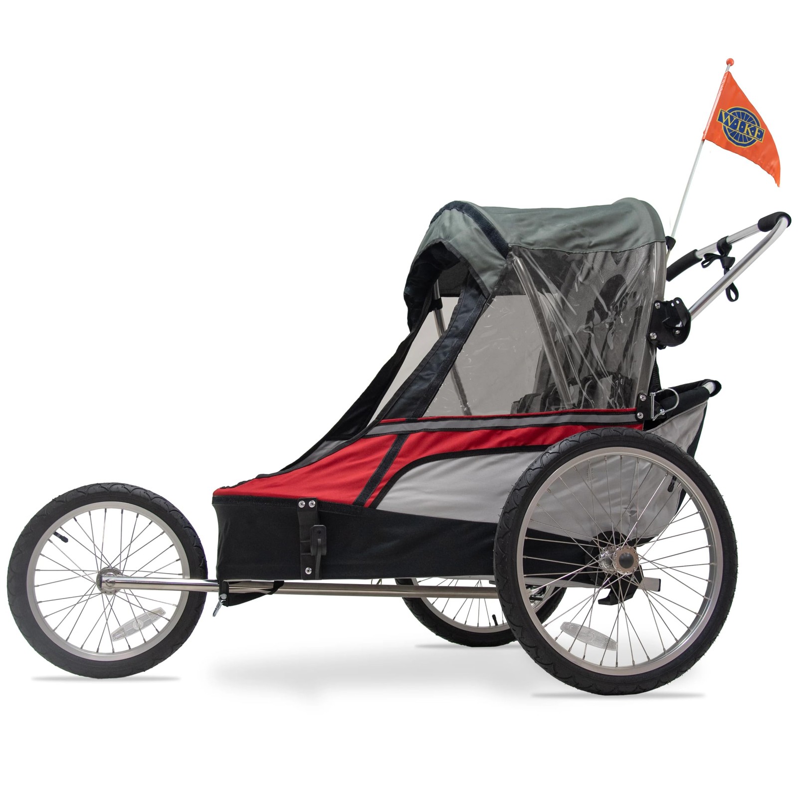 Premium Double Bike Child Trailer Red/Grey (Walk Jogging)