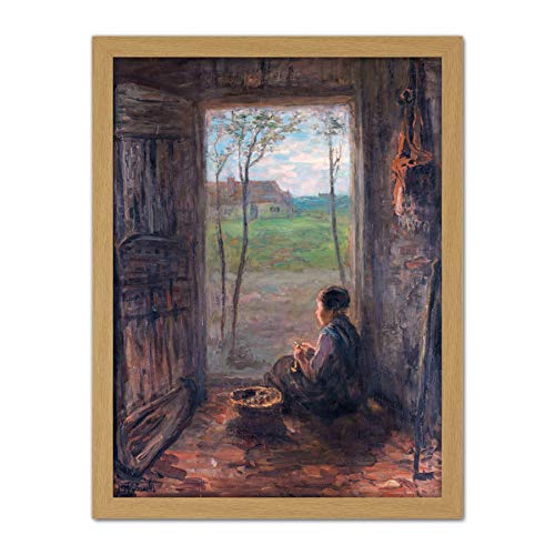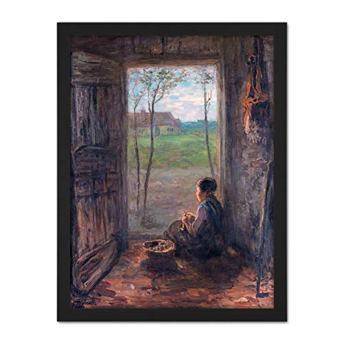 Artery8 Jozef Israels A Laren Scene Child Farm Painting Artwork Framed Wall Art Print 18X24 Inch
