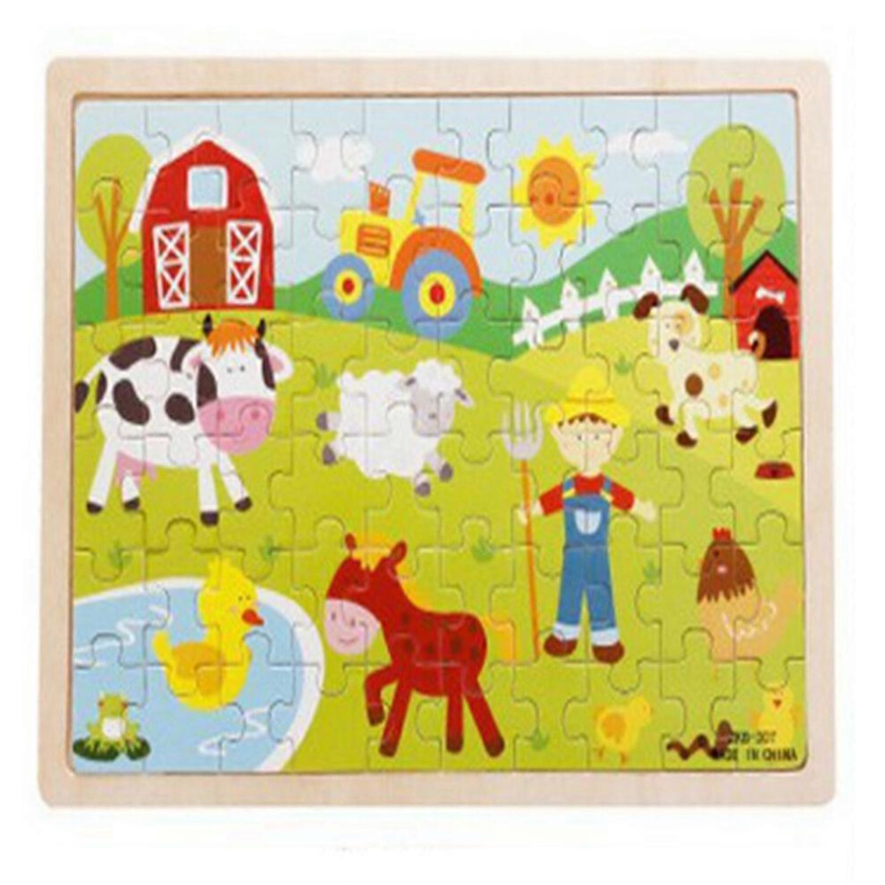 (As show, One size) 60pcs/ Set Wooden Cartoon Jigsaw Toy Early Educational Toys for Kid Baby Child(Farm with Pond)
