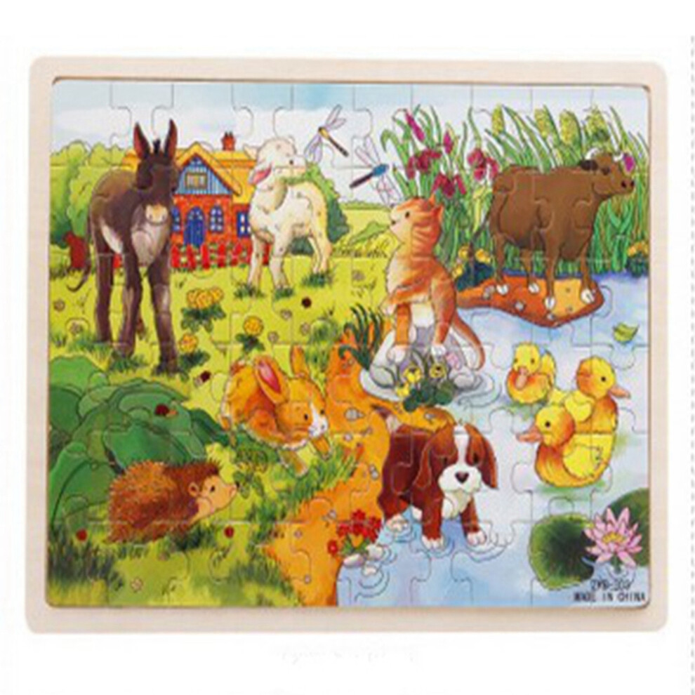 60pcs Wooden Cartoon Jigsaw Toy Educational Kids Baby Child Farm Pond