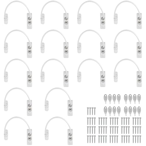 Kamtop Window Restrictor Child Safety Locks – Flexible Cable Window & Door Restrictor with Keys, ABS & Stainless Steel Security Lock (Cable Length: About 19cm/7.48in, 16, Count)