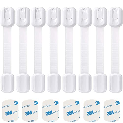 LifenC Adjustable Child Safety Locks, 8 Pack Baby Safety Cupboard Locks,6 Extra Sticker, No Trapped Fingers, Easy Install, No Tools Needed, Child Locks for Kitchen Cupboards, Cabinets, Drawer, Fridge