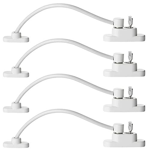 Keyohome Pack of 4 Window Restrictor Locks Child Safety Window Locks for UPVC Windows, Baby Security Window Restrictors with Screws Keys, Door Window Opening Wire Cable Limiter for Home School (4pcs)