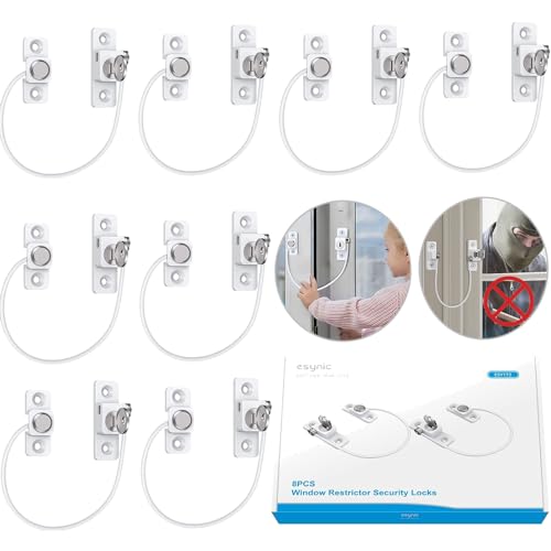 eSynic 8Pack Durable Window Locks Child Safety 185mm/7.3 Inch Wire Long Window Restrictor for UPVC Window Safety Restrictors with Key Relieable Window Security Locks Perfect for Home Office Safety etc