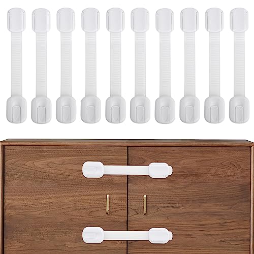 Septeamay Child Safety Cupboard Locks, 10 Pack Adjustable Cupboard Locks for Children Baby, Child Locks for Kitchen Cupboards Cabinet Fridge Drawer Refrigerator Toilet, Easy Install, No Tools Needed
