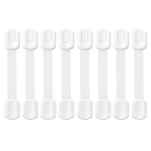 Baby Safety Strap Locks 8 Pack, Child Proof Cabinet Locks, Adjustable Drawer Latches, Adhesive Cupboard Locks for Toddlers, No Drilling White