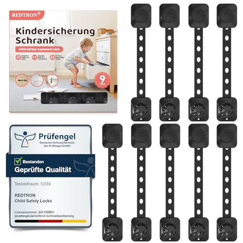 REDTRON Adjustable Cupboard Locks for Children, 9 Pack Baby Safety Drawer Latch, Child Locks for Cabinets, Drawer, Closet, Fridge, Refrigerator, Trash, with Upgraded Adhesive Double Lock System(Black)