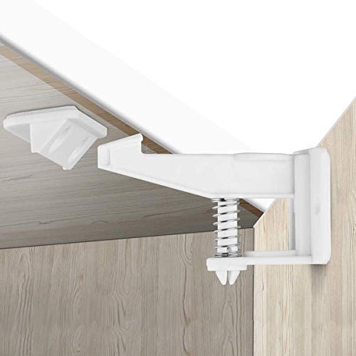 Giantzhong Cupboard Locks for Children, 10 Pack Child Locks for Kitchen Cupboards, Child Safety Cupboard Locks with 3M Adhesive, Drawer Locks Baby Proofing Cabinets with No Drilling, White