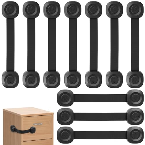 ECHOCUBE Child Safety Drawer Locks, Baby Proofing Cabinet Strap Locks with Adhesive 10 Packs, Adjustable Baby Safety Locks for Cupboard, Fridge, Toilet, Trash (Black)
