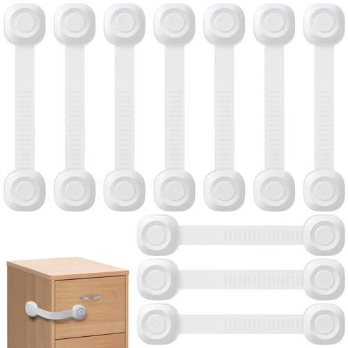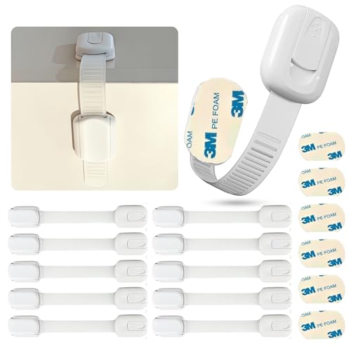 ECHOCUBE Child Safety Drawer Locks, Baby Proofing Cabinet Strap Locks with Adhesive 10 Packs, Adjustable Baby Safety Locks for Cupboard, Fridge, Toilet, Trash (White)