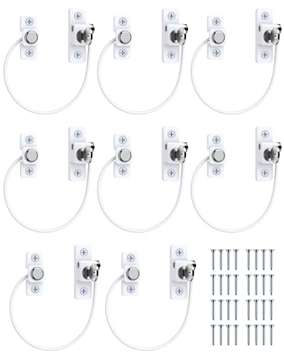 eSynic 8 Pack Child Safety Window Locks for UPVC Window Security Locks with Stain Steel Cable Keys Self Screws Cat Window Restrictor for Home Office Factory Farm Safety etc