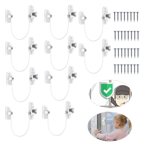 eSynic 10 Pack Window Locks Child Safety Durable& Strong Window Restrictor 185mm Wire Long Window Safety Locks Anti-Theft Security Upvc Window Locks for Home Office Factory Farm Safety etc