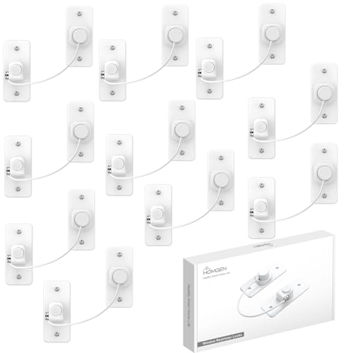 HOMGEN 10 Pack Window Locks Child Safety No Drilling Durable Window Locks for Upvc Strong Self Adhesive Window Safety Restrictor 2 Way Installation Window Security Lock for Home etc -Button Style