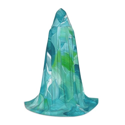 Kfjghhl Blue Oil Paint Texture Long Hooded Cloak Teenagers Child Cape Witch Costume Halloween Costume Women Men 35-55inch