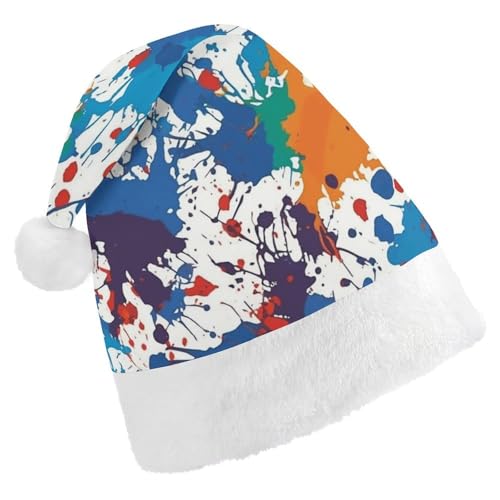 TPDHJK Christmas Hats for Adults Abstract Paint Splashes Santa Hats Unisex Red Velvet Holiday Headwear Xmas Hat for Christmas Festive New Year Party Child