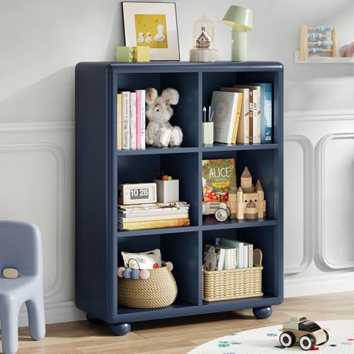 Kids Bookshelf, Large Wooden Bookcase with 6 Cube Storage, Girl Toy Storage Organizer Cabinet with Child Safe Paint&Thick Board, Boy Tall Book Shelves Nook for Office Playroom Living Room (Navy Blue)