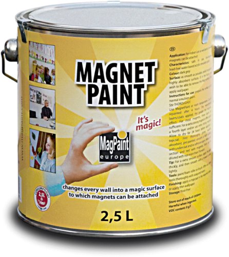 MagPaint - Magnetic Paint - Water Based Acrylic Paint - Strong Magnetic Pull - Perfect for Sticking Up Notes, Memos & Photos - Safe & Child-Friendly - Dark Grey - 5m² Coverage, 2.5L