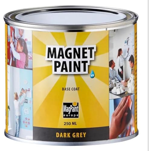 MagPaint - Magnetic Paint - Water Based Acrylic Paint - Strong Magnetic Pull - Perfect for Sticking Up Notes, Memos & Photos - Safe & Child-Friendly - Dark Grey - 0.5m² Coverage, 0.25L