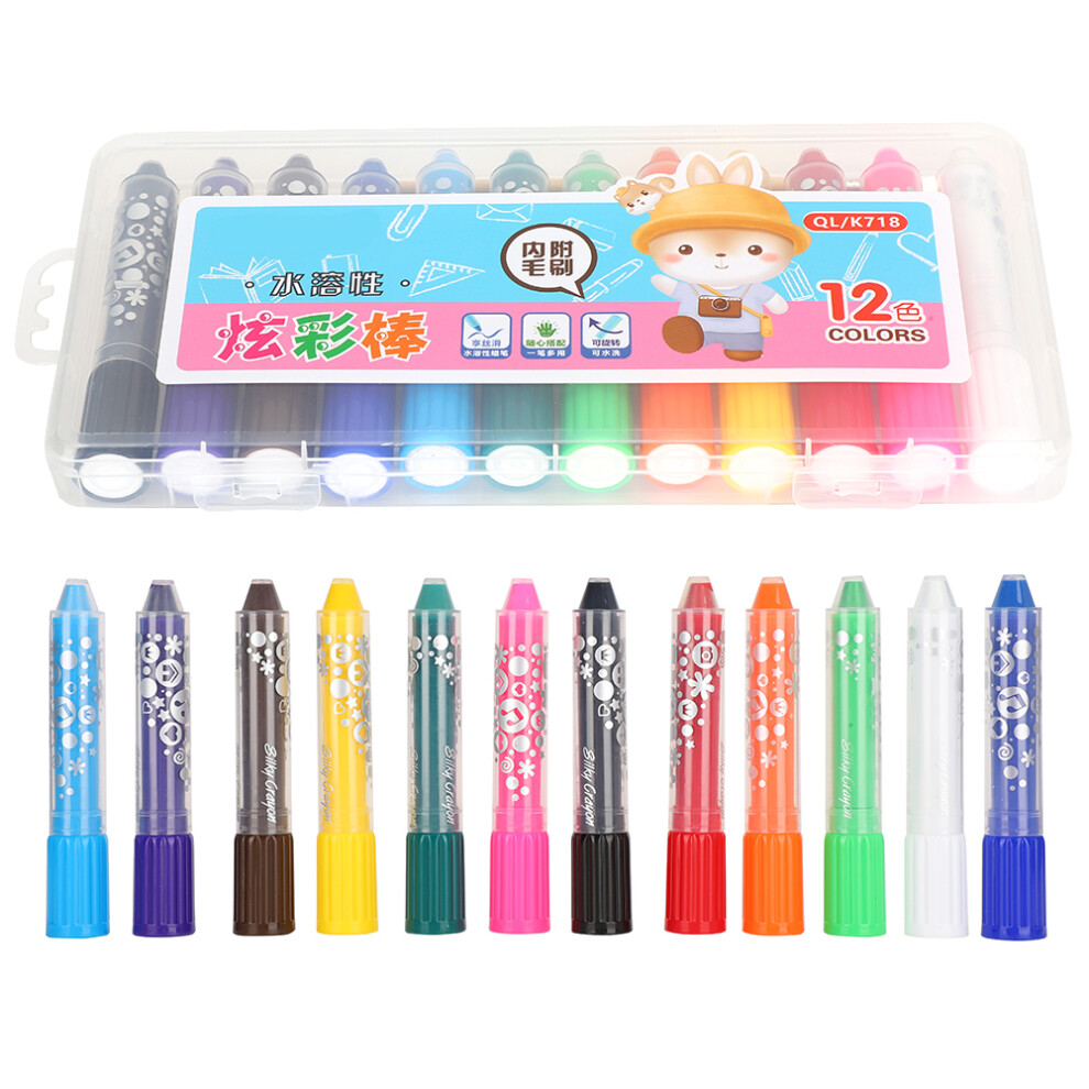 Silky Crayon Colorful Rotating 12 Colors Set WaterSoluble Oil Painting Stick Child Paint Brush